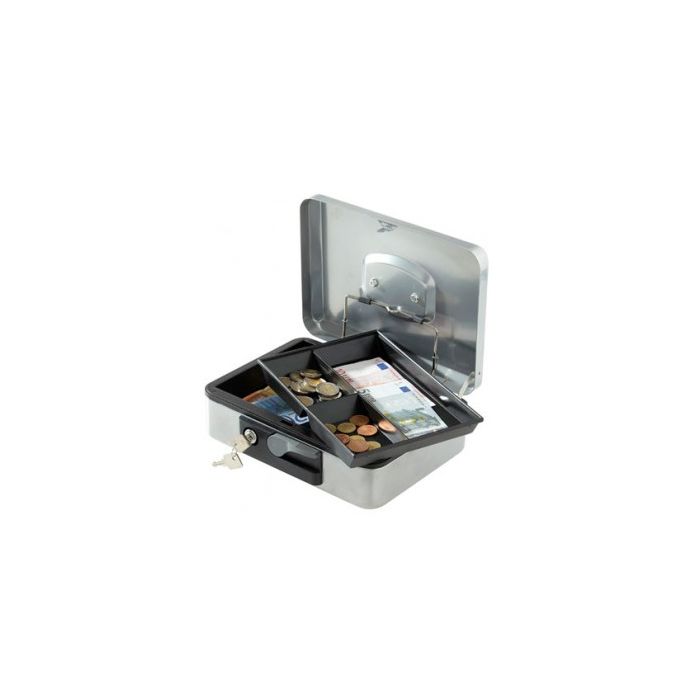 Cash box 25 x 18 x H9 with key. Gray. 3 compartments