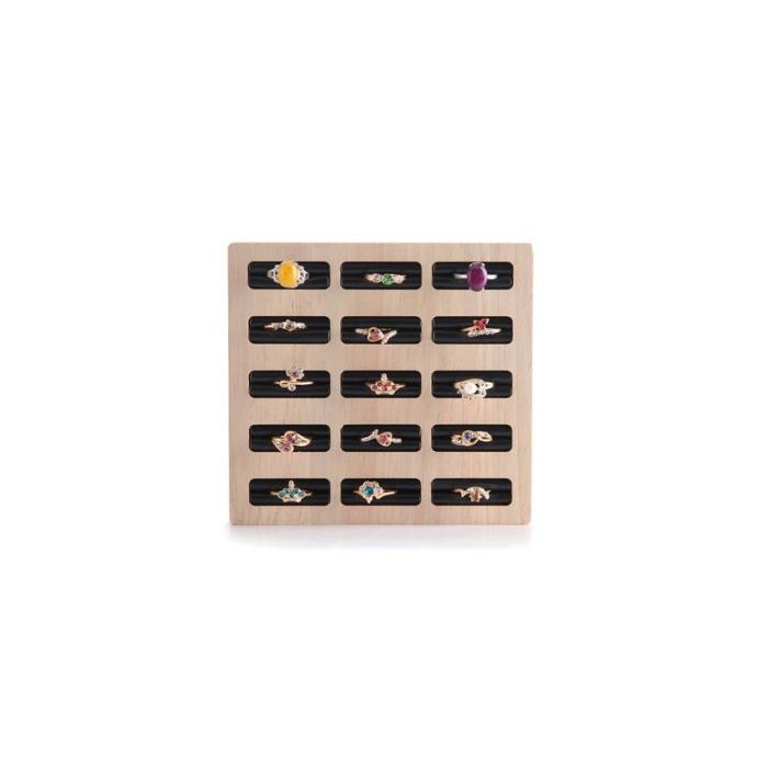 Jewelry tray for rings. Bamboo wood. Square with black insert 15 compartments