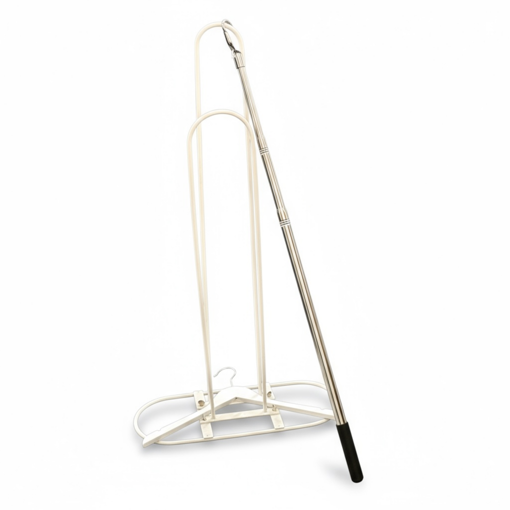 1 vaateripustin ja 1 vaateripustinteline valkoisena