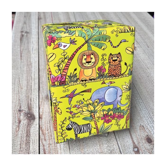Kääri lahjasi juhlavassa lahjapaperissa, jossa on värikkäitä kuvioita Afrikan majesteettisista eläimistä. Eläinkuvat tuovat iloa ja seikkailun tuntua. Vihreä pohjaväri valkoisella päällystetyllä paperilla. 80 g. Mitat: leveys 57 cm x 150 m. Katso myös värilliset lahjapussit