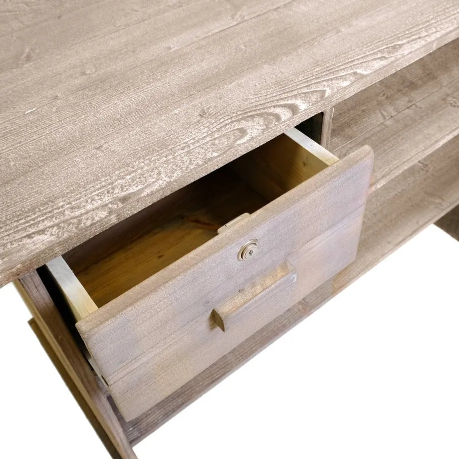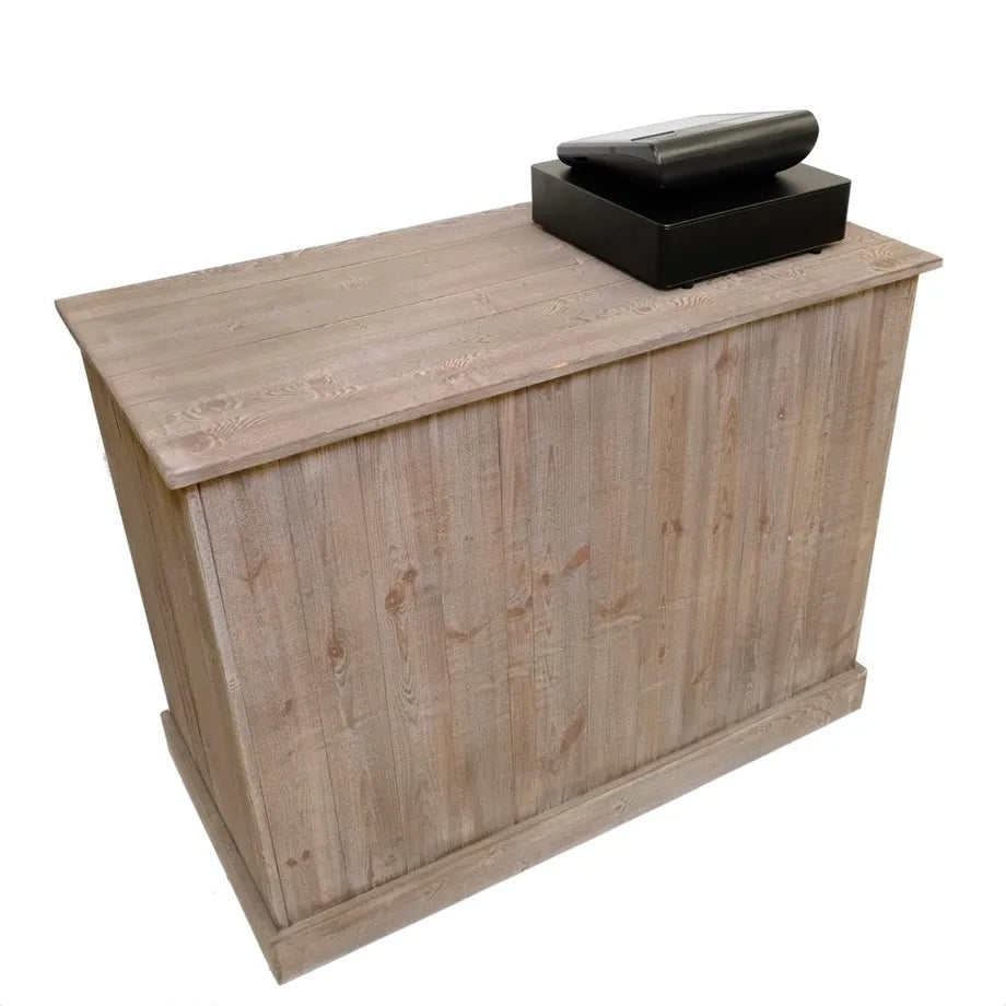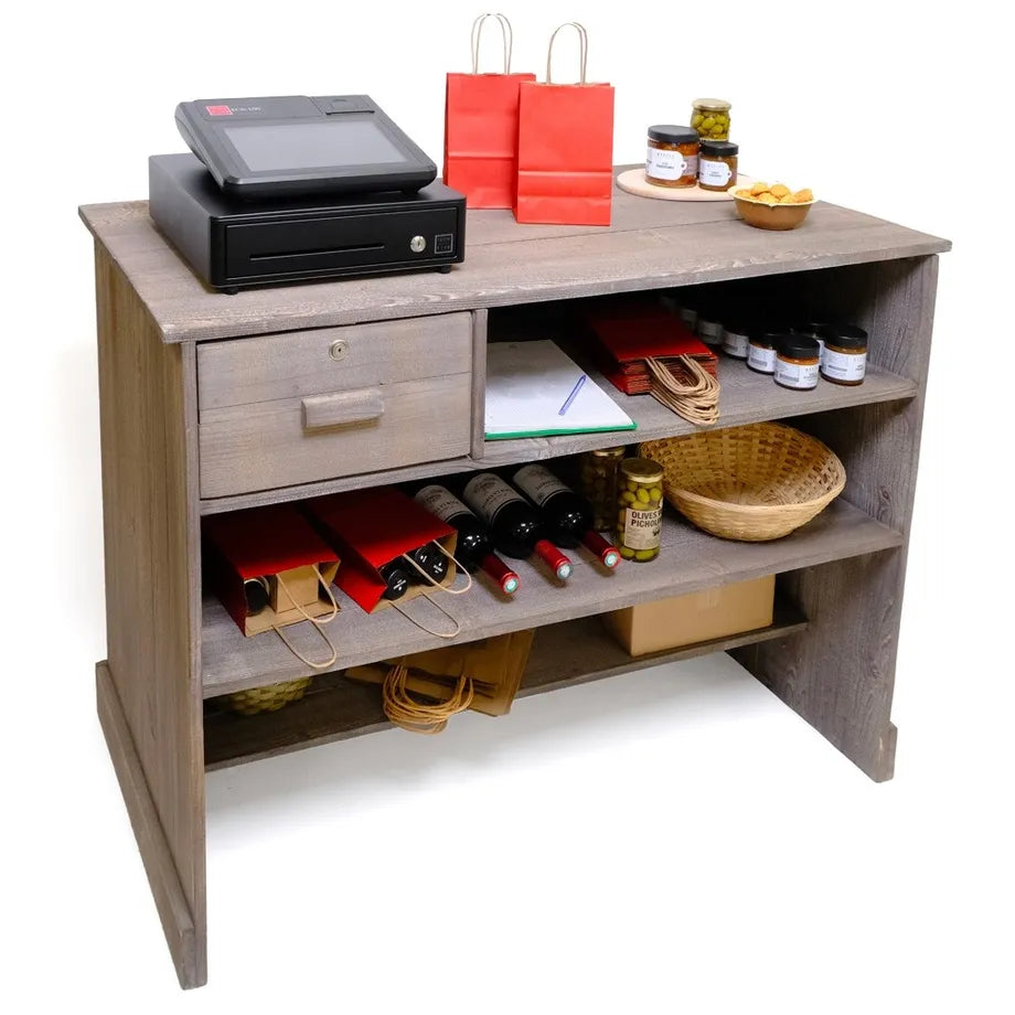 Robust Heritage butiksbekkur fullur við læsari skuffu og 3 hillum til goymslu av t.d. silkepappíri, bæringaronnum og øðrum vørum. Hesin bekkur hevur eina djúpd á 59 cm. Natúrlig broyting í furutrænum tryggjar, at hvør einstakur butiksbekkur er ein serligur og gevur títt butikssnið ein autentiskan stíl. Heritage butiksbekkurin verður leveraður liðskipaður og klárur at taka í nýtslu beinanvegin. Mál: B 119 x D 59 x H 90 cm. 1 skuffa m/ læsø og 3 hillur sum vístar.