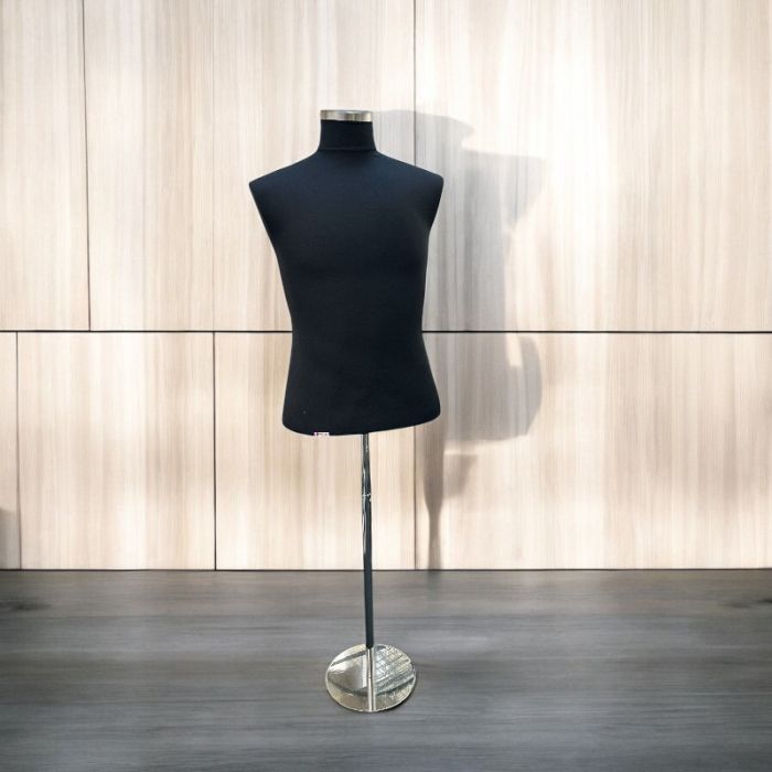 Fransk herregine, sort stof, XXXL, lang krop, Alu top, krom rund fod.