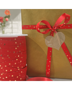 Flot gavebånd med guld stjerner på den ene side og enfarvet rød på den anden.