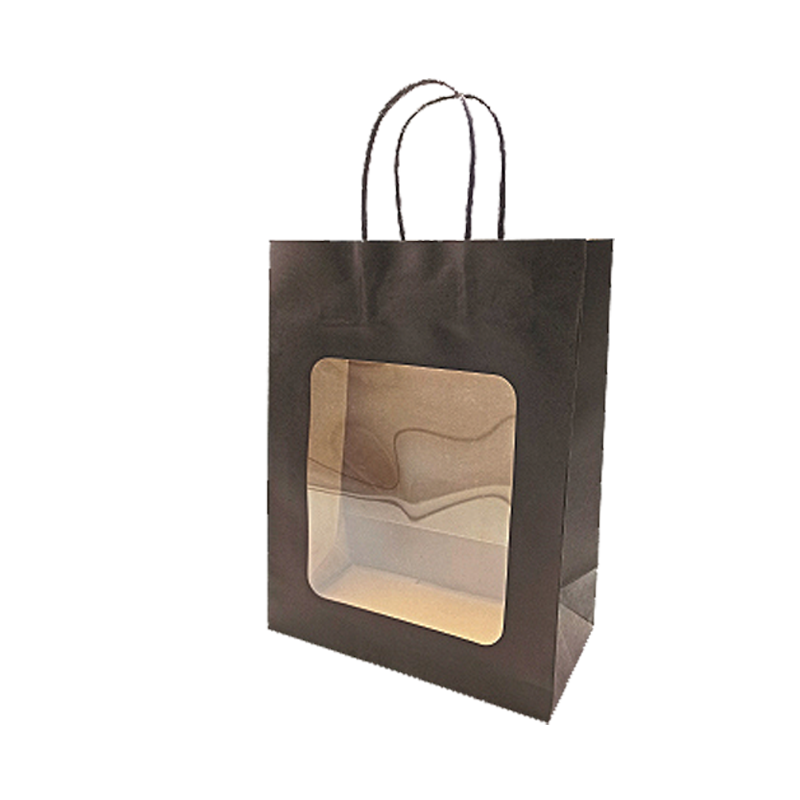 Pappírspoki. H 27,5 cm. Með glugga. Gjafapoki - svartur. 20 stk.