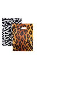 Plastposer i med to typer af tryk, leopard eller Zebra. Plastposerne er ideelle til tøj, sko og andre rummelige produkter. Plastposerne kommer med forstærket håndtag.