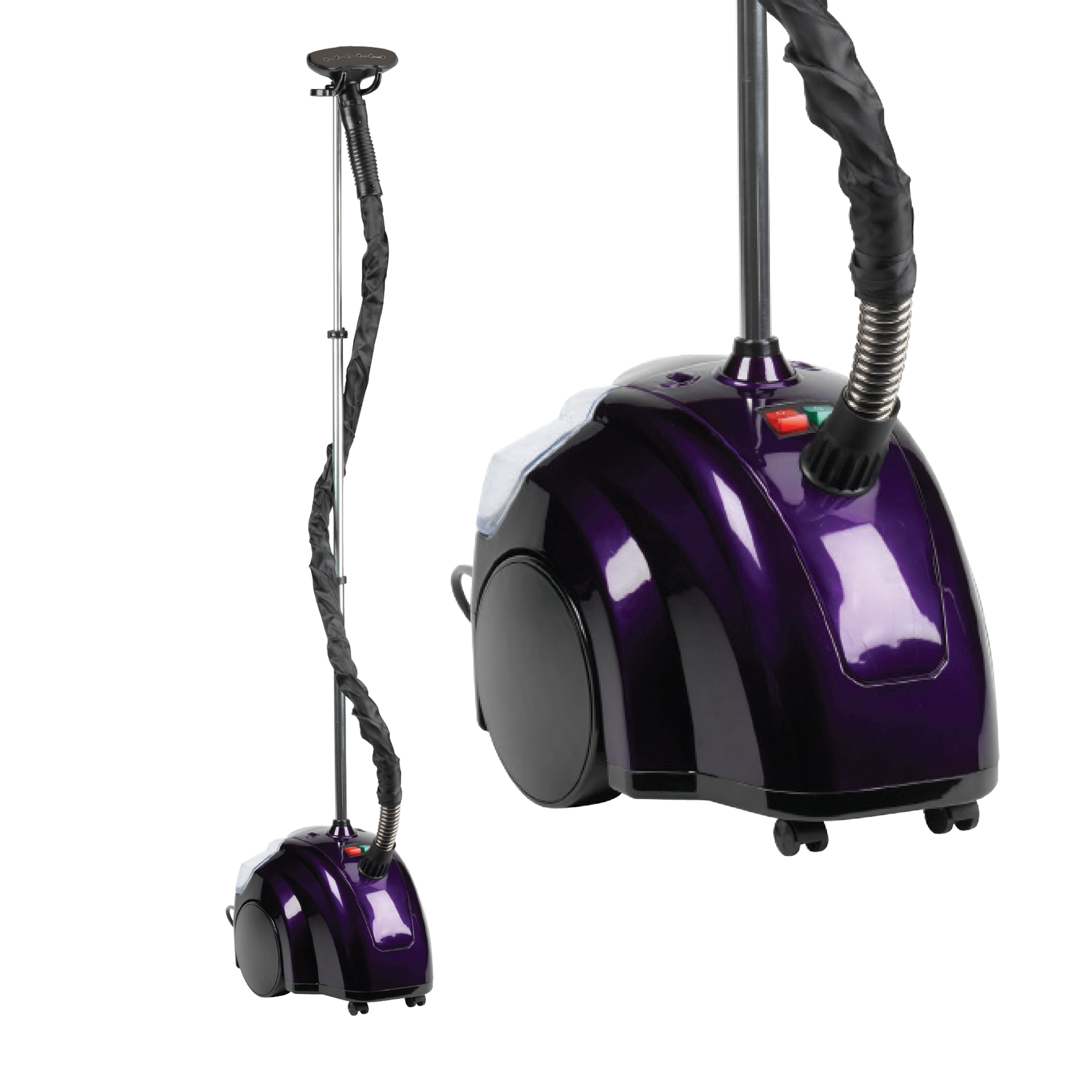 Quick Steam II - Tøj Steamer med 2 hastigheder. Passer til den lille butik. Den har en stor tank på 1,9 liter, som giver op til 1 time non-stop brug. Inkl. plastik mundstykke og børste. Funktioner:– Kan steame tynde stoffer– Plasthoved med aftagelig børste til steaming af fløjl– Synlig vandtank - Let at se vandindholdet. Vandet opvarmes i en kanal i selve steameren. Derfor kan vandet hurtigt opvarmes. Det betyder at kalk aflejres i et rør og skal afkalkes jævnligt. Plastskal på steamer.