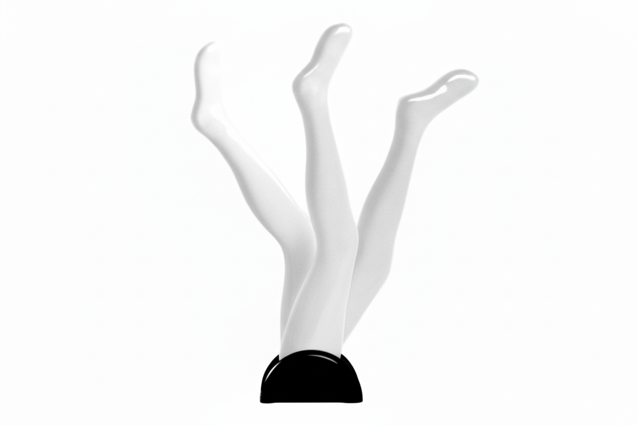 Vifte med 3 ben. Sort holder med 3 ben i frostet plast. Ideel til display af strømper og strømpebukser i vinduer og på borde. H 95 cm.